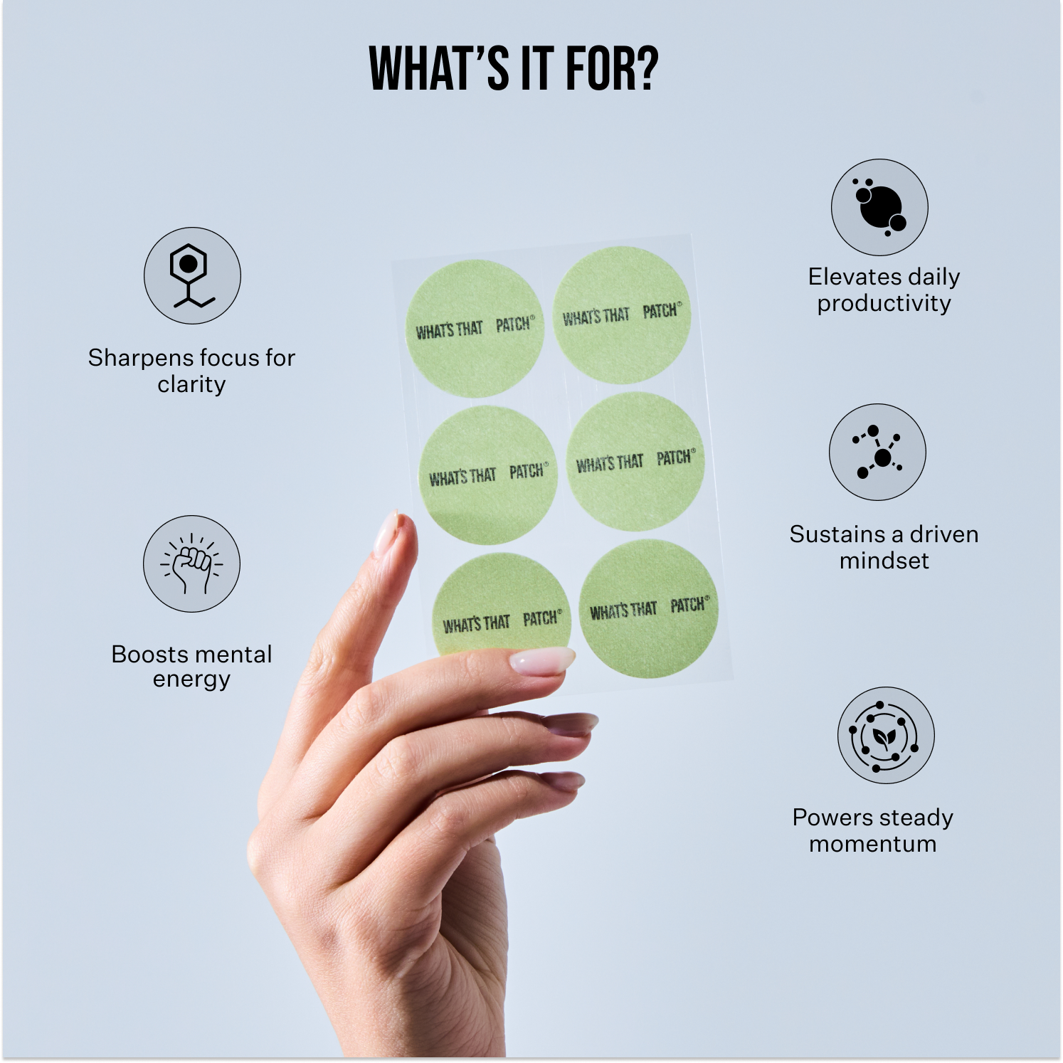 Our patches release carefully selected ingredients through your skin, delivering targeted well-being benefits directly into your bloodstream over 6–8 hours. By bypassing the digestive system, they ensure a steady, controlled effect—avoiding the peaks and dips of traditional methods. It’s wellness, simplified and sustained.